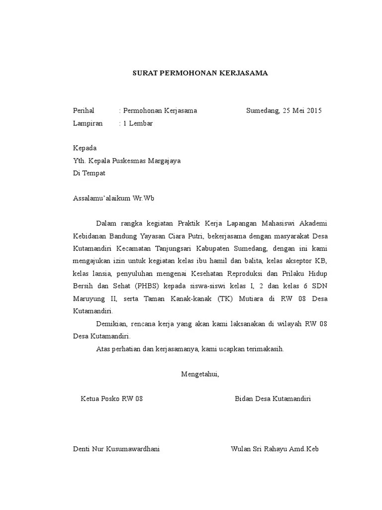 Hal tersebut setelah sebelumnya surat dari universitas. Khairul jalil · surat kerjasama. Apa itu contoh surat permohonan kerjasama?