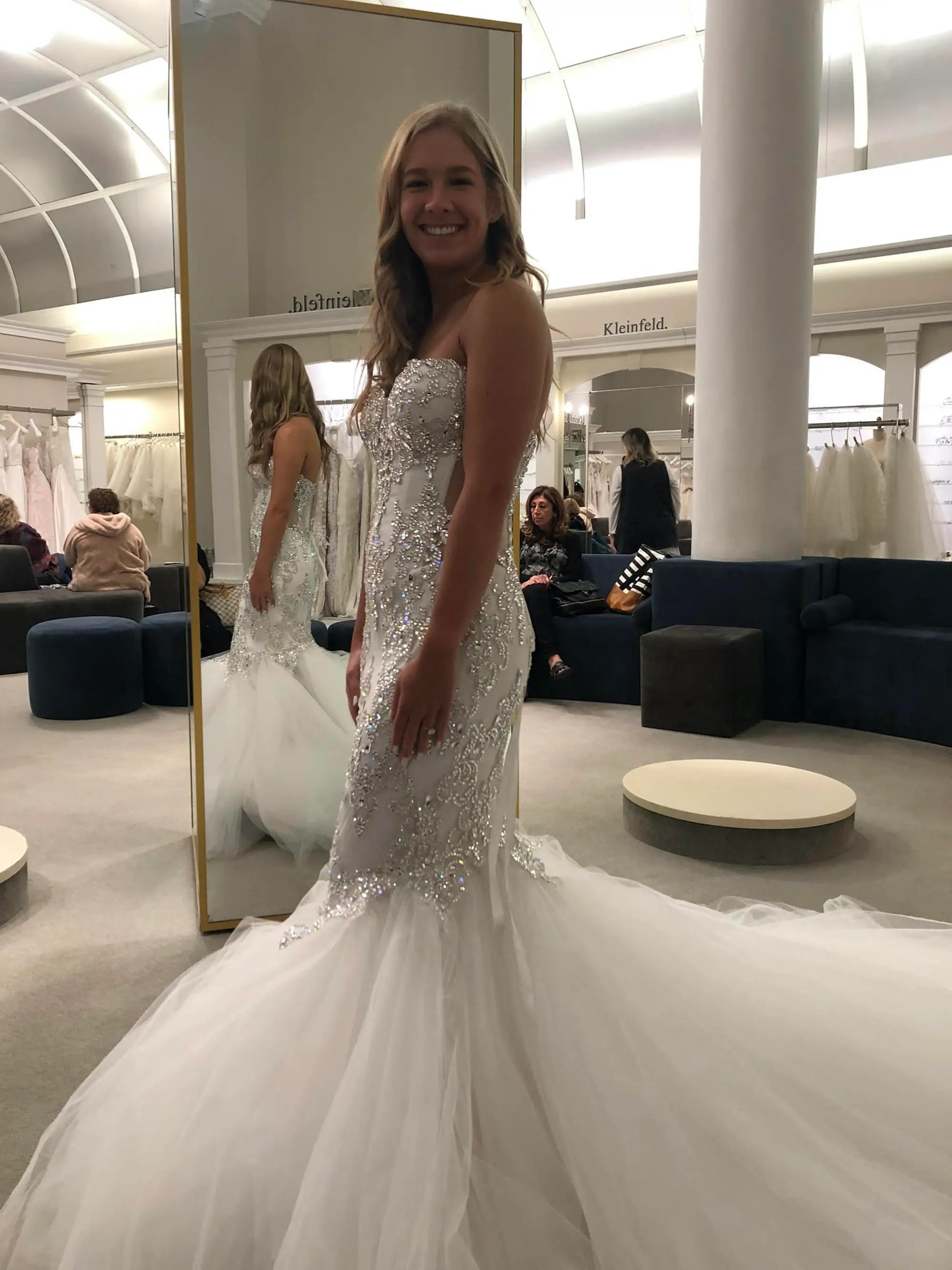 Ended up challenging the kleinfeld team with the task of finding the ideal reception dress. Samantha elkassouf in a pnina tornai gown.